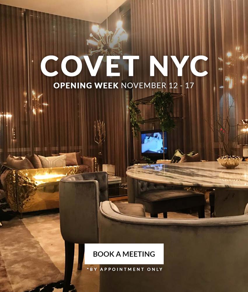 Design by architect Karl Fisher and interior of Shamir Shah, COVET NYC is completely decorated for the occasion with a carefully selected selection of furniture, lighting, upholstery and accessories from the best European luxury interior decor brands.